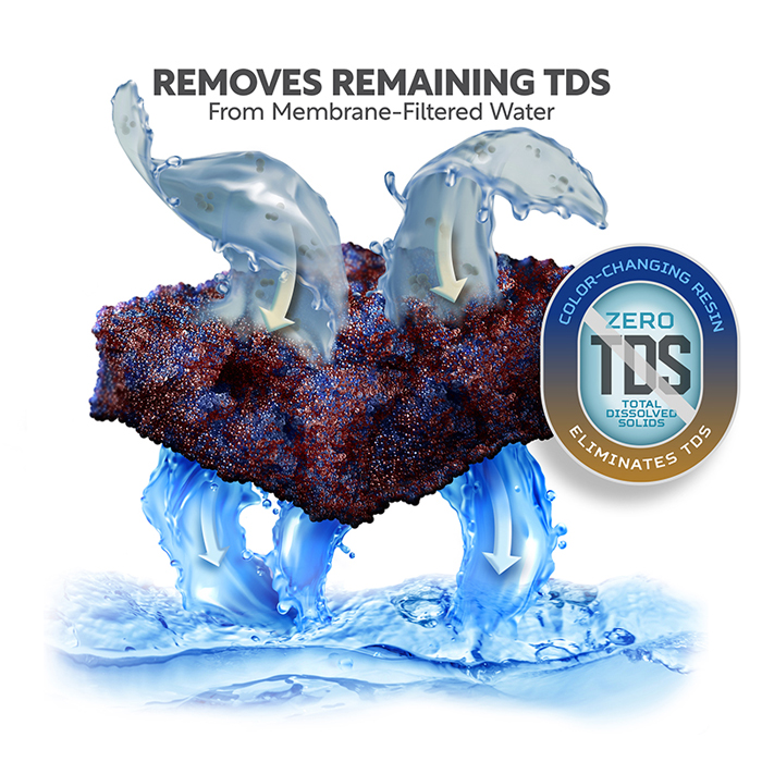 MIXED BED DI CARTRIDGE – The 10” x 2” cartridge will absorb about 1,800 TDS before the cartridge needs to be replaced. Resin life is based on the TDS of the water flowing into the filtration unit. The included resin cartridge can be re-filled with new bulk resin to reduce filtration costs. Item 540722