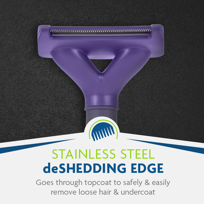 REMOVES LOOSE HAIR: Stainless steel deShedding edge reaches through topcoat to safely and easily remove loose hair and undercoat without damaging topcoat or cutting skin (when used as directed).
