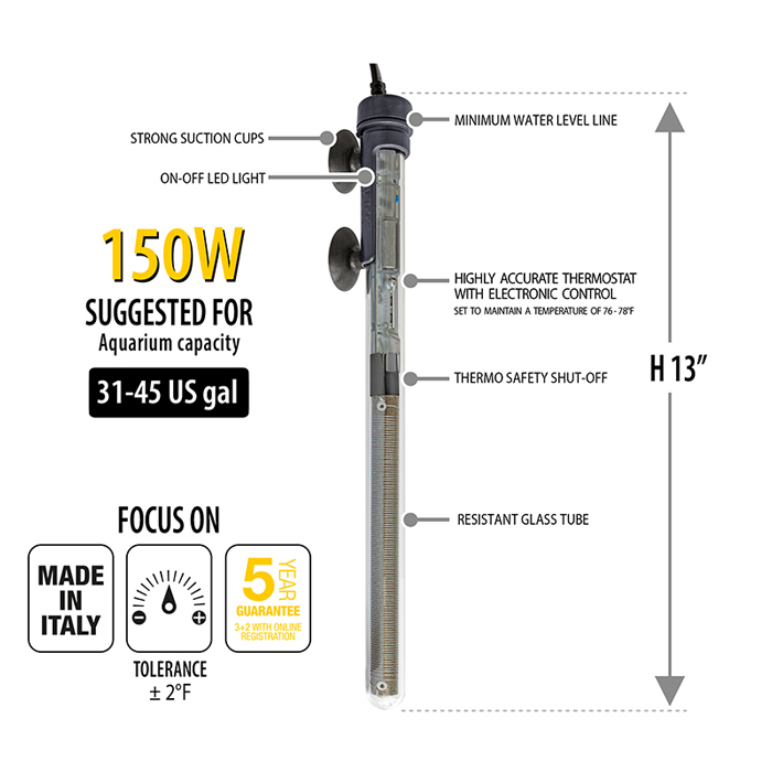 The SCUBA PRESET is a submersible electronic heater pre-set to 77°F / 25°C to ensure a perfect, consistent temperature for your aquarium.